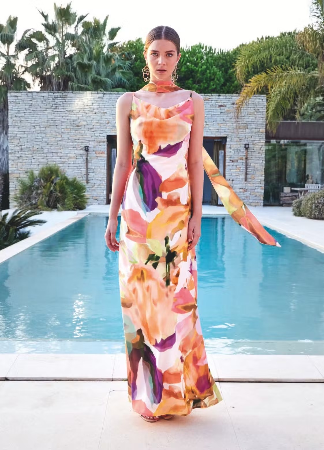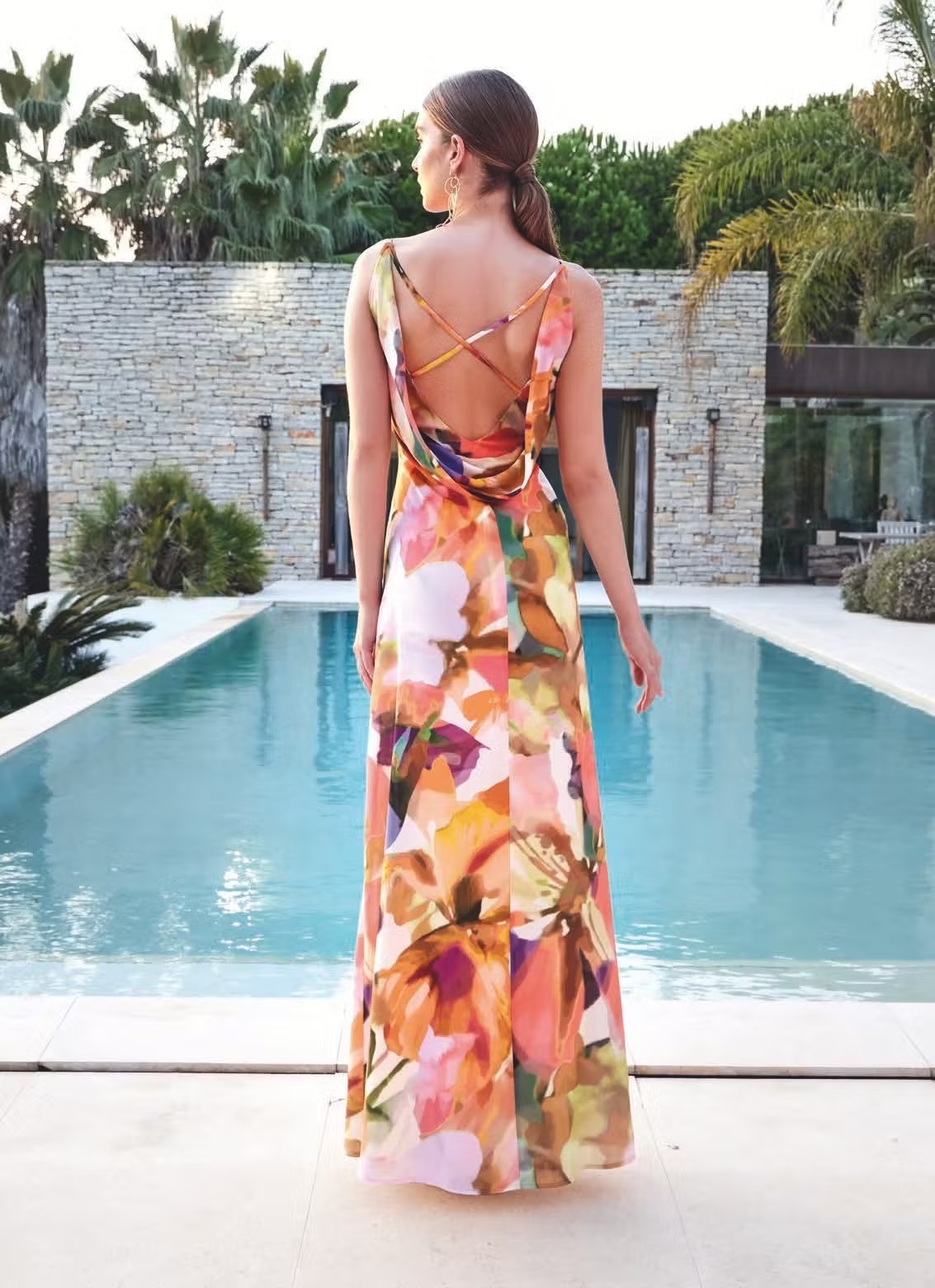 Vestido de fiesta sofisticado, ideal para bodas de día o de noche. Corte favorecedor y tejidos de alta calidad que realzan tu silueta con elegancia y estilo.